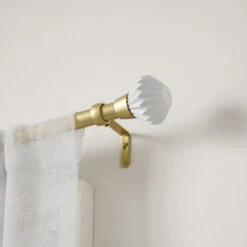 Umbra Pleat Stainless Steel Curtain Rod – Gold Finish And White Finials – 42 To 120-in