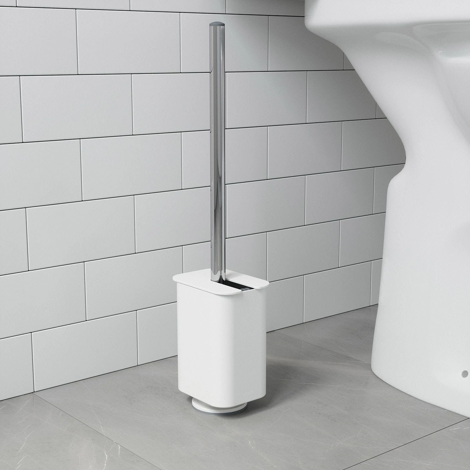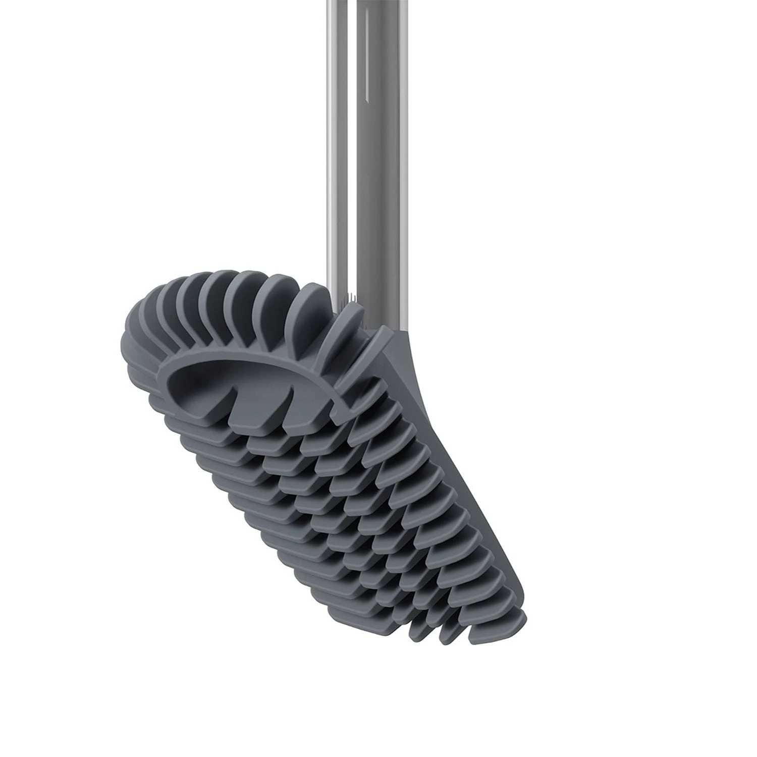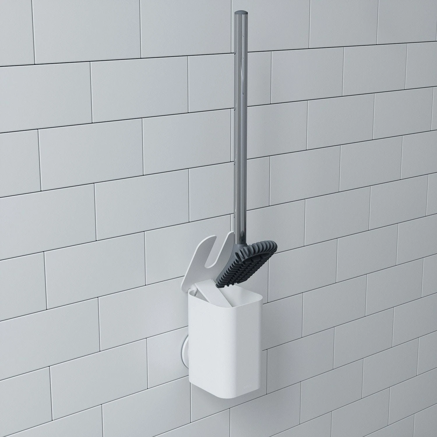 A toilet brush that efficiently gets the job done, Umbra Flex Sure-Lock toilet brush makes cleaning your toilet a less gruesome chore. With rubberized bristles that are both soft and durable, this toilet brush prevents odor-causing bacteria, mold or mildew for a sanitary and long-lasting brush. Its lid holds open when the brush is removed and automatically closes when putting back into place, all without having to touch anything but the handle. Providing a thorough clean, Flex has four cleaning zones that target all hard to reach places: bottom bristles that conform to the shape of bowl, side bristles for scrubbing hard to reach spots, back bristles for cleaning under the rim, and a scraper in the front. Flex Toilet Brush’s canister neatly stores the brush when not in use and can be either secured to the floor or attached to a smooth vertical surface such as the side of a tiled bathtub, or tiled walls. Umbra’s sure-lock technology works on smooth, flat surfaces including tile, glass, m