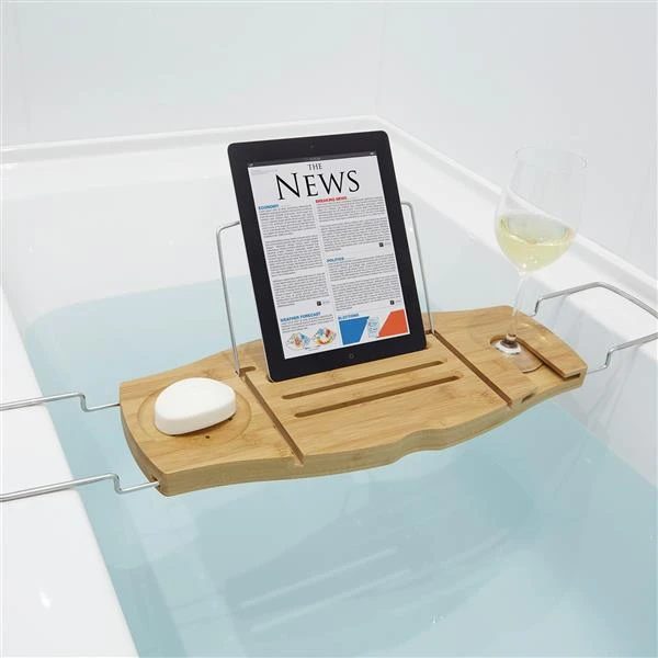 - Features soap holder, fold over book support, wine glass holder, place for razor and loofah