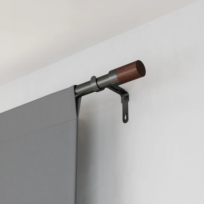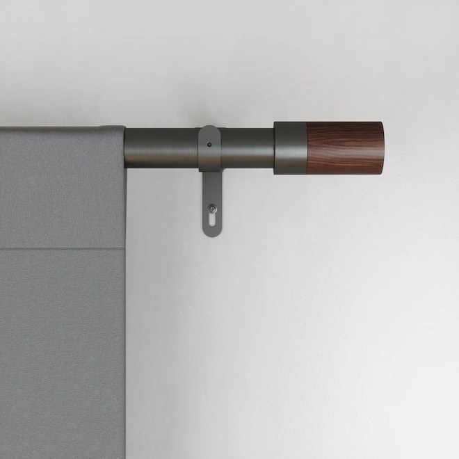 A modern curtain rod with a sophisticated touch, Blok is a 1-in (2.5 cm) diameter adjustable curtain rod with a gunmetal grey finish and wooden cylindrical finials. Available in two sizes; 36 to 72 inches (91/183 cm) and 72 to 144 inches (183/366 cm), Blok can fit a variety of window sizes. Made of steel, supporting a maximum weight of 22 lbs (10 kg), this curtain rod is durable and long-lasting. Installation is super simple. Rod comes with brackets, metal screws, plastic screw anchors and assembly instructions. Blok curtain rods set can be used with grommet, back tab, rod pocket and tab-top curtains.
