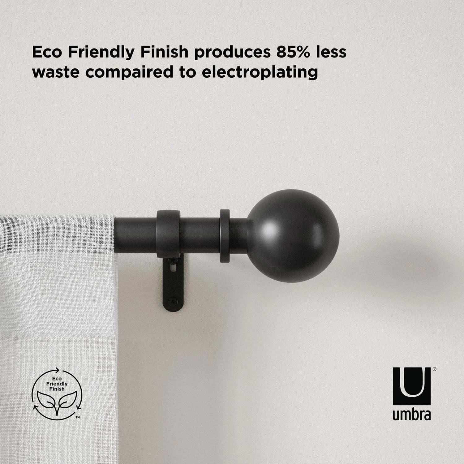 Featuring classic ball-shaped finials, with an updated design, Bolas can be incorporated into a variety of decor styles. Its telescoping rods fit a wide range of windows to best suit your space. Made of steel, this curtain rod is durable while remaining attractive in design. Includes all necessary mounting hardware for an easy installation. Bolas curtain 1″ (2.5cm) diameter rod comes in a variety of sizes and supports curtain sets weighing up to 22lbs. (10kg). This curtain rod is made with an eco-friendlier finish. It produces 85% less water and solid waste than traditional electroplating finishes.