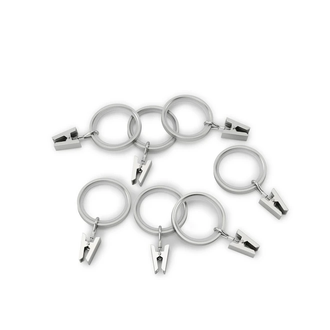 Open and close your curtains with ease using Cappa clip curtain rings. Designed for 1-in diameter curtain rods, pair the rings with the matching Cappa model (sold separately) for a seamless, complete look. Sold as a set of 7, these curtain clip rings feature a modern metal finish and are easy to use and install. Their simple design ensures they will complement a variety of decor styles and drapery.