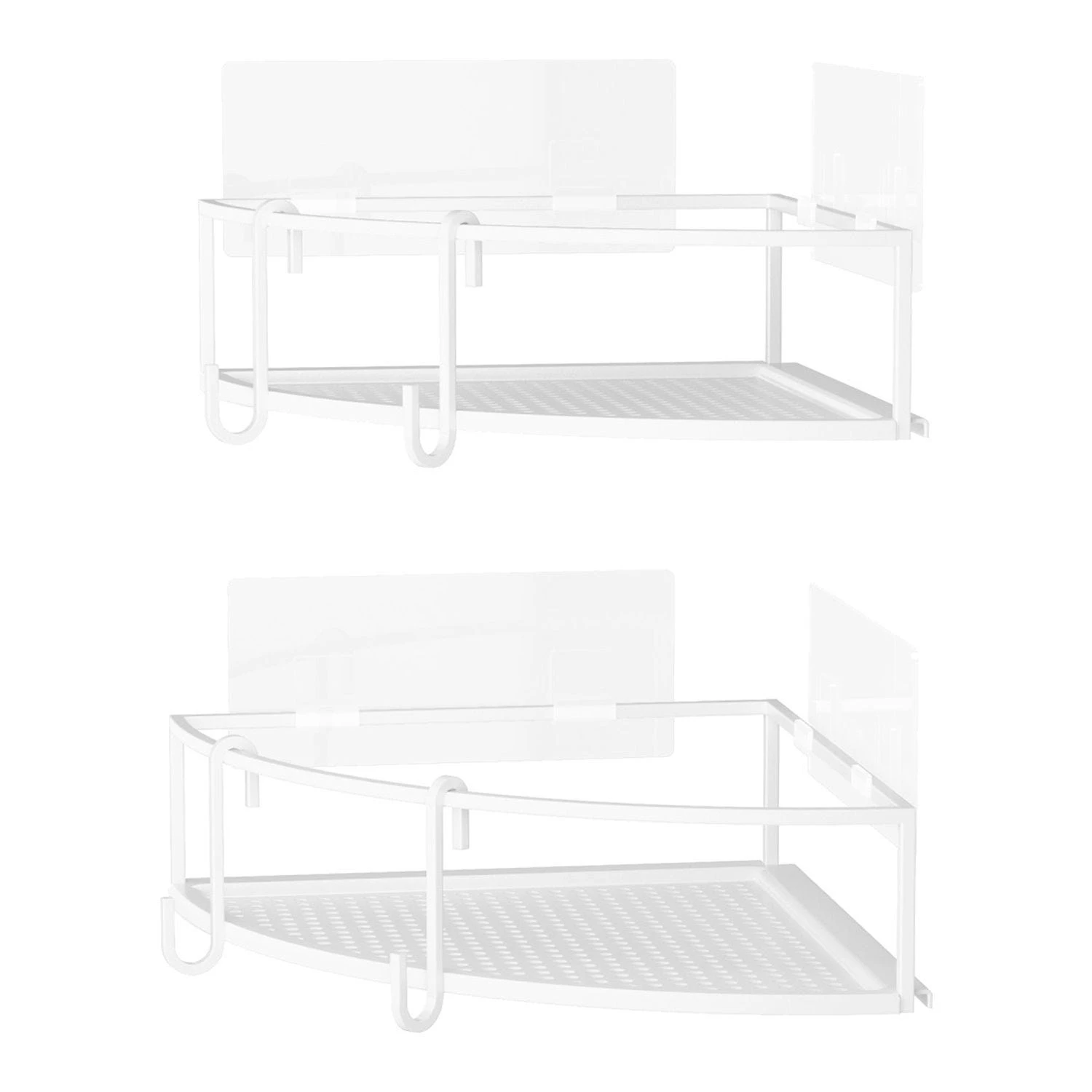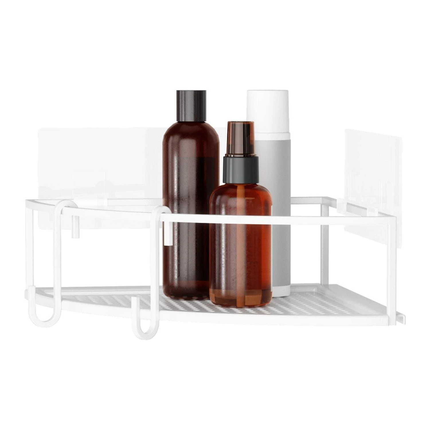 Add elevated storage to your bath or shower space with Cubiko corner bins .These non-damaging shower storage caddies have a modern, bent wire design, making them easy to integrate with a variety of decor styles. Easy to install, Cubiko includes non-damaging, waterproof adhesive strips that can be applied on various surfaces such as tiles, dry wall, concrete, etc. (does not work on porous surfaces). Each bin holds 10lbs (4.5 kg) per bin and is made of rust-free metal. Includes two metal hooks to hold loofahs, small towels, and more.