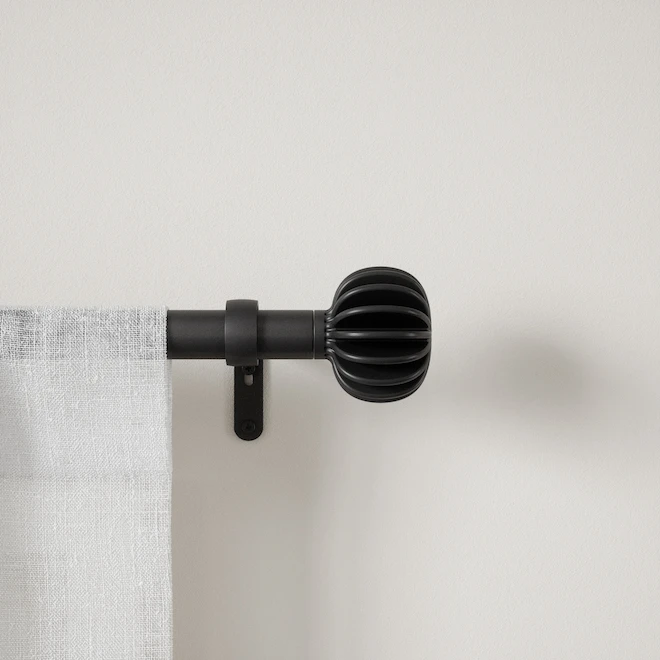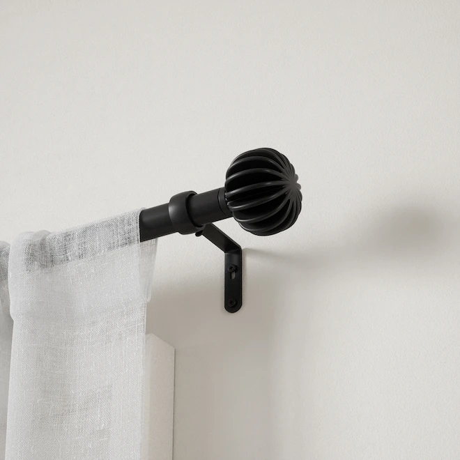 Inspired by paper ornaments, Finn model features a textured, pleated finial, with repeating edges. It fits a wide range of windows to best suit your space. Made of steel, this curtain rod is durable while remaining attractive in design. Finn curtain 1-in (2.5 cm) diameter rod supports curtain sets weighing up to 22 lbs. (10 kg) Includes all necessary mounting hardware for an easy installation. This curtain rod finish is eco-friendly made since it produces 85% less water and solid waste than traditional electroplating finishes.