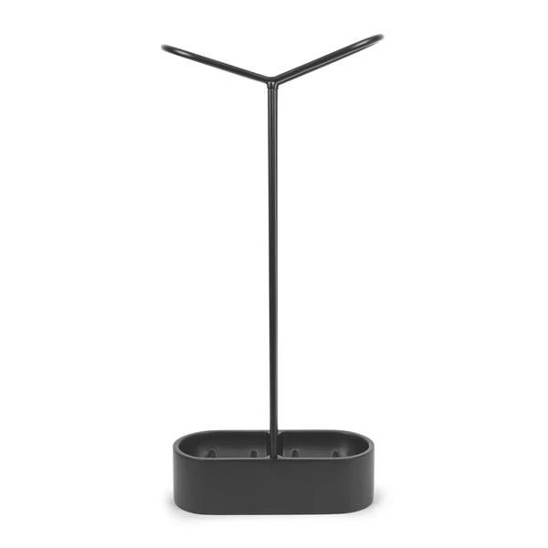 - Minimalist esthetic keeps entryway airy and light. With its simple wire construction and weighted resin base, umbrellas are stored neatly in place for the next rainy day