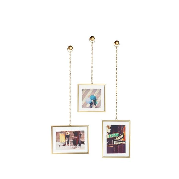 - DRESS UP YOUR WALLS: Fotochain comes as a set of 3 gallery style frames suspended by a chain, reminiscent of jewelry, hung on a round and sleek button-like knob