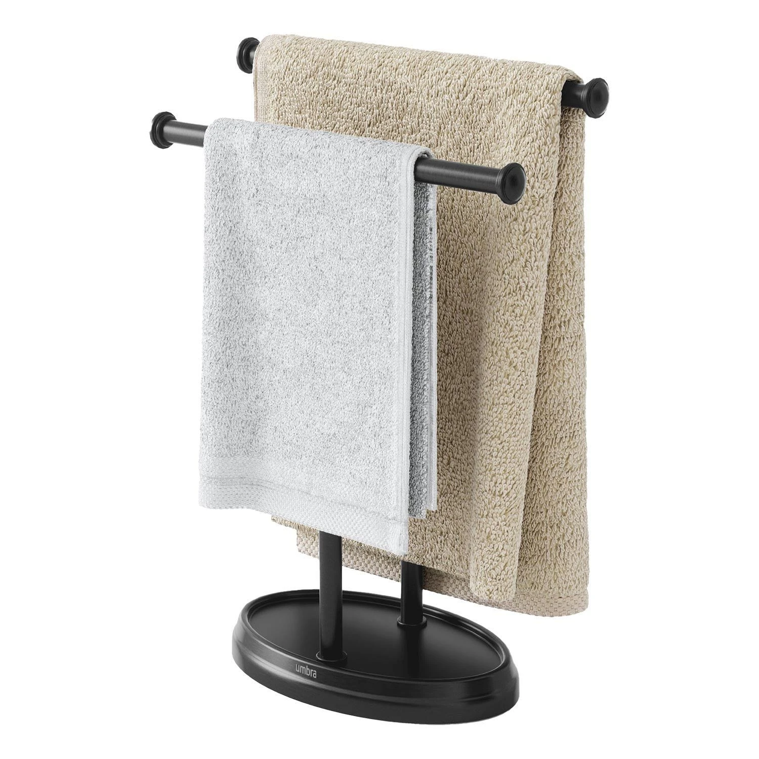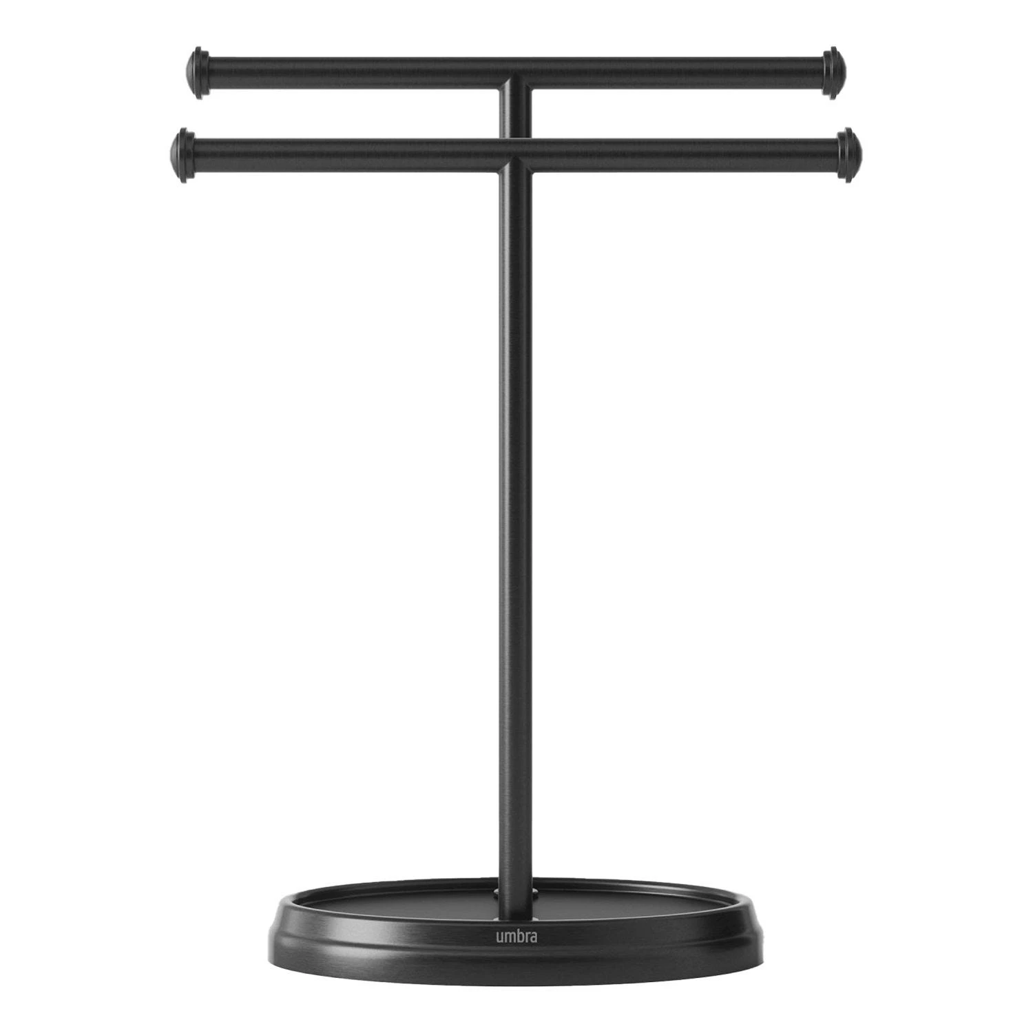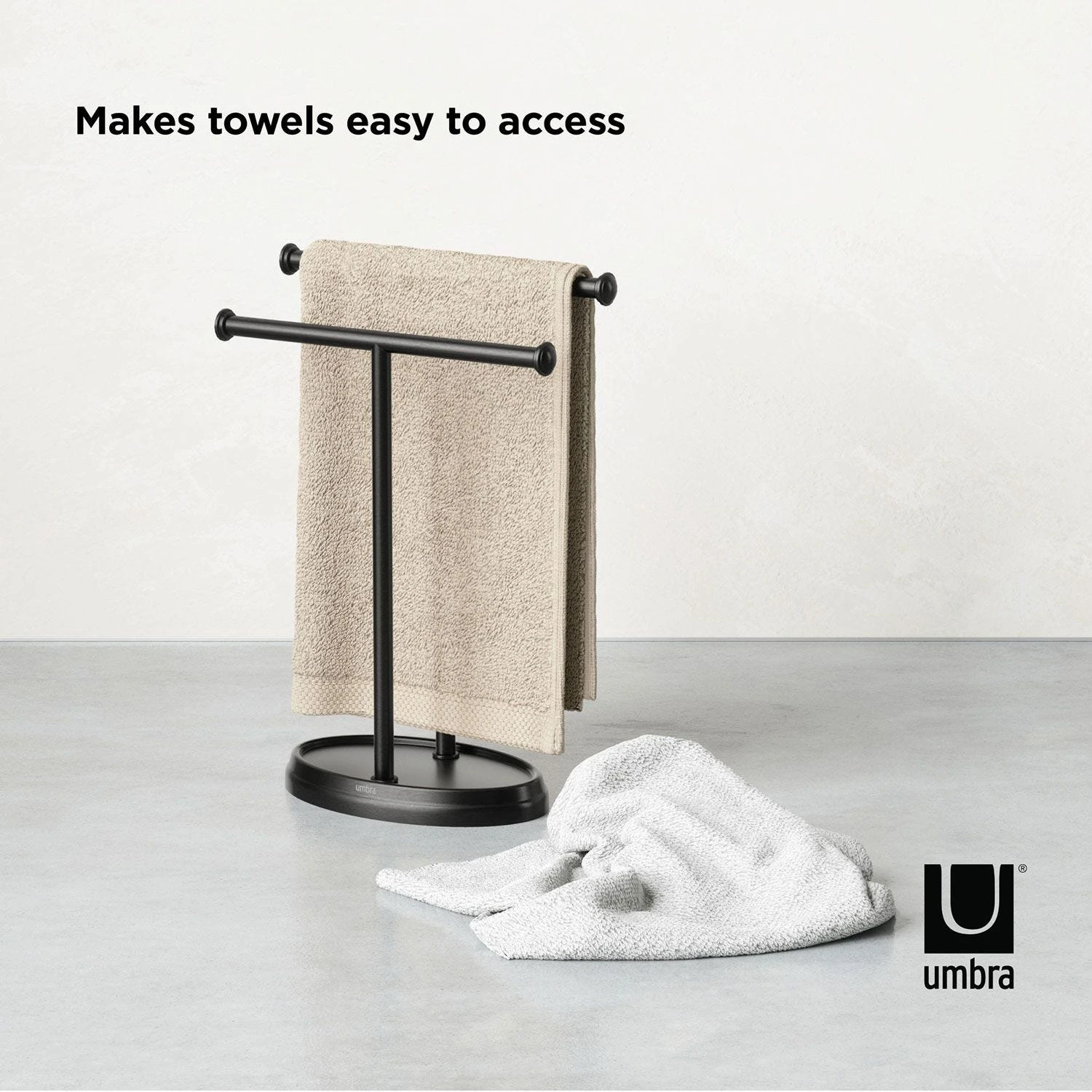 Palm double towel tree keeps towels clean and orderly, and your countertop organized. The elegant towel stand is designed using strong metal, and a sleek nickel-finish. Its compact dimensions of 4.25 x 10.5 x 3.75 inch (11 x 26.5 x 9.5 cm) allow it to be easily stored on any surface. Fulfilling its intended purpose of holding 2 hand towels, Palm’s base can also be used as a tray for miscellaneous items.