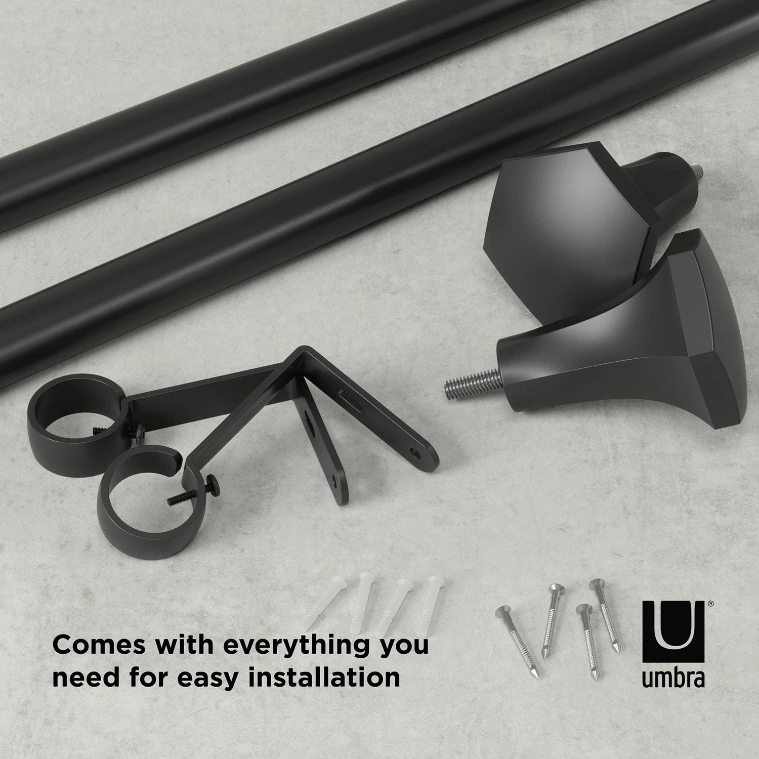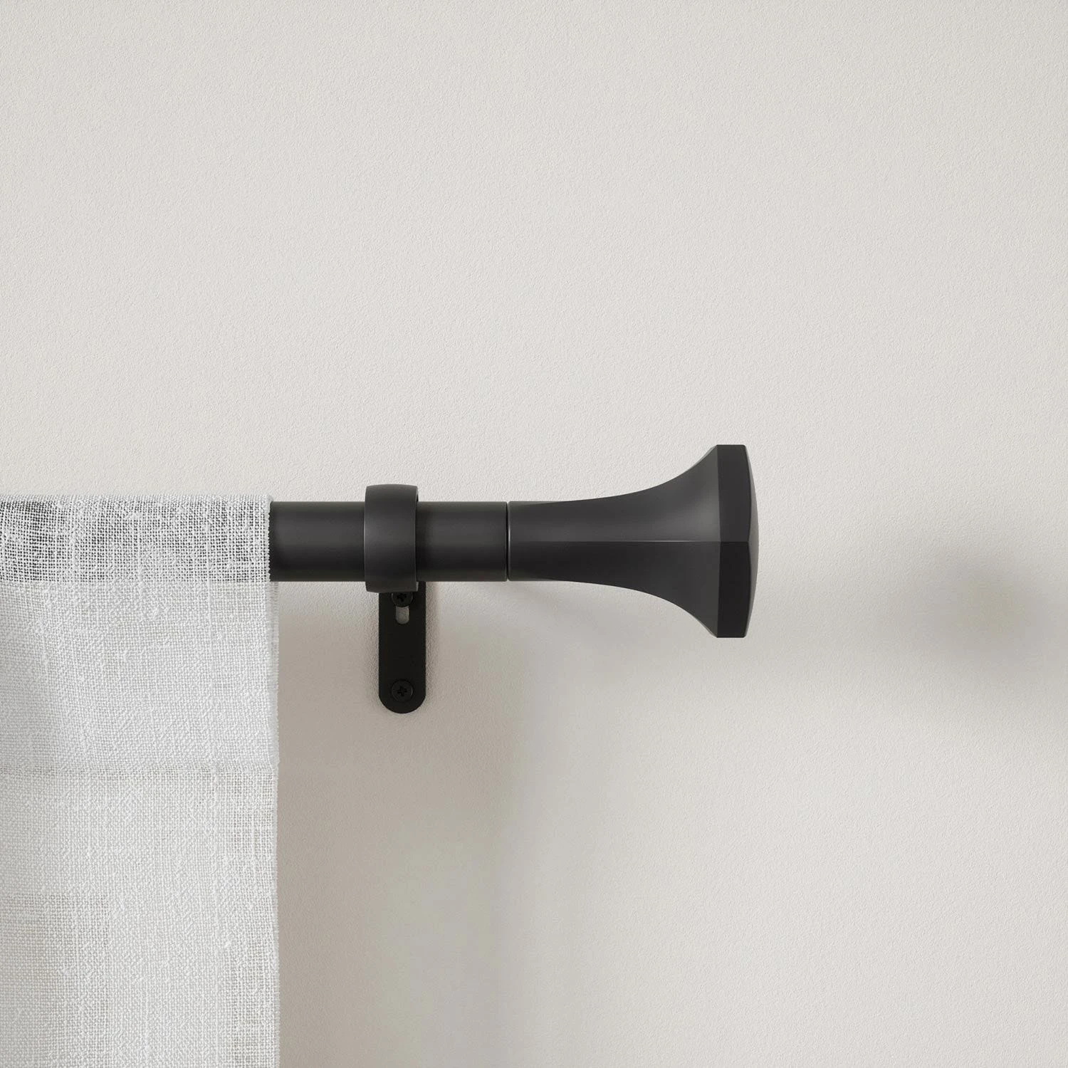 Inspired by architectural columns, Sita features sleek, metal finials. Its telescoping rods fit a wide range of windows to best suit your space. Made of steel, this curtain rod is durable while remaining attractive in design. Sita curtain 1″ (2.5cm) diameter rod comes in a variety of sizes and supports curtain sets weighing up to 22lbs. (10kg) Includes all necessary mounting hardware for an easy installation. This curtain rod is made with an eco-friendlier finish. It produces 85% less water and solid waste than traditional electroplating finishes.