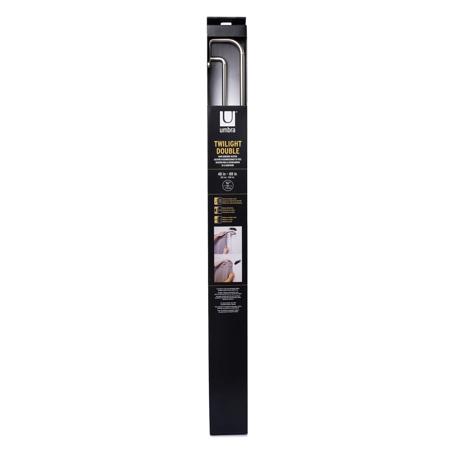 Twilight features an innovative wrap-around design which helps prevent light leakage by allowing your curtain or drapery panel to rest directly against the wall. Wrap the panel around the curved end of the rod and tuck it behind the bracket to eliminate exterior light from seeping in. Twilight has a strong and stable 3/4 inch diameter, constructed to hold curtains from light to medium weights, with a maximum capacity of 22lbs. This double curtain rod can support 2 curtains and is available in multiple sizes. *Note: 3/4″ (1.9 cm) diameter rod includes a 5/8″ (1.6 cm) diameter back rod. *Note: 48-88 and 88-144 sizes include one centre support bracket. U.S Patent NO. D644.918.