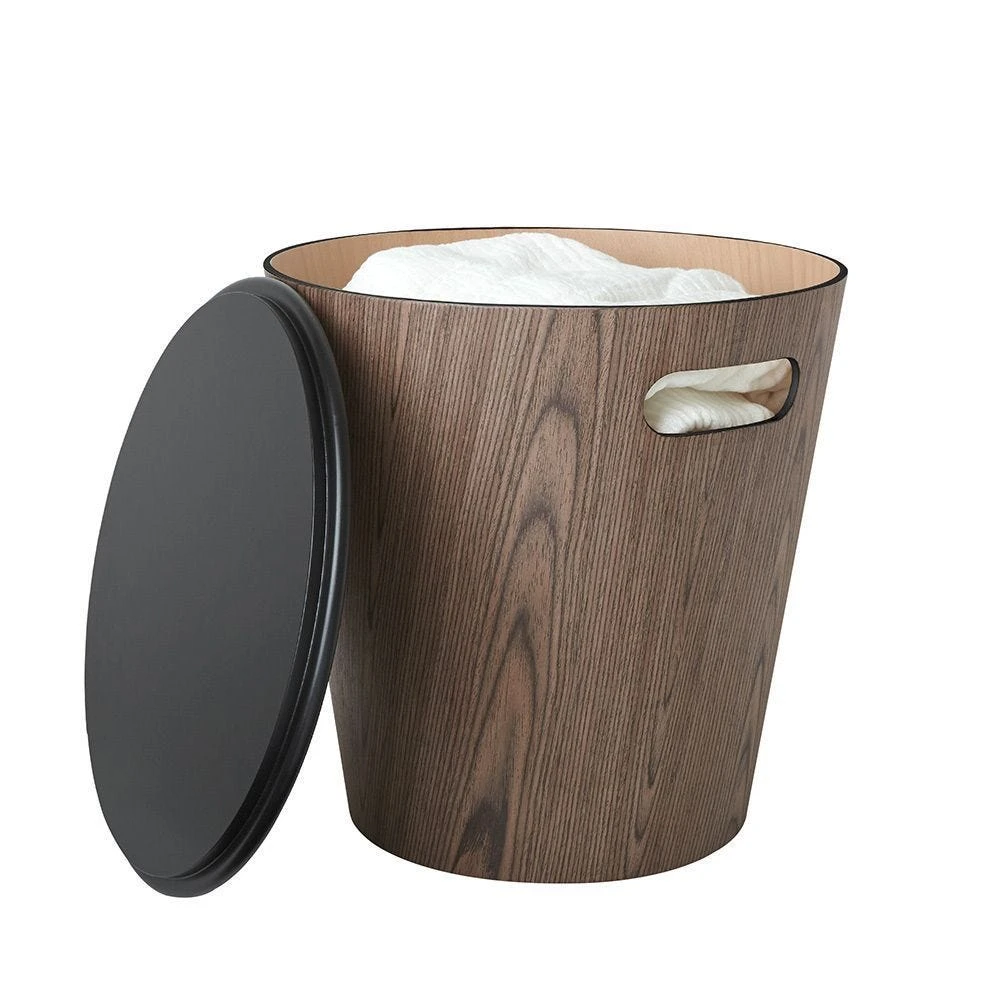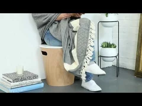 Woodrow is a contemporary and sleek take on the typical ottoman with its beautiful, natural wood finish and geometric shape. Its lid functions as both a tabletop or a seat, and its integrated handles make it easy to move around the house. This piece measures 16.5 x 15.8 inches (42 x 40 cm), so it can neatly store bulkier household items like blankets.