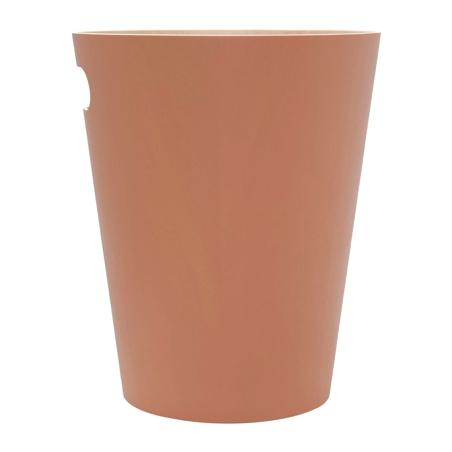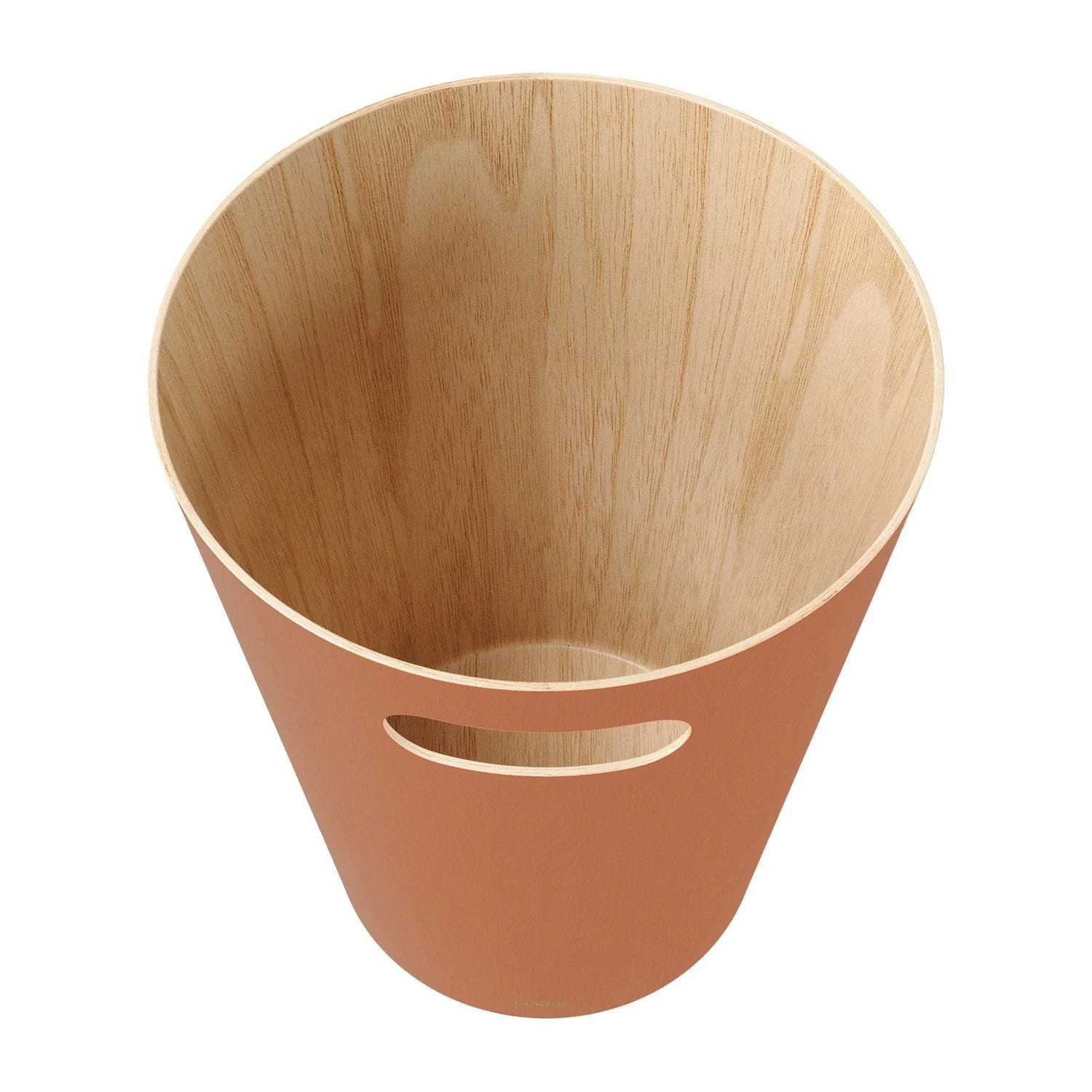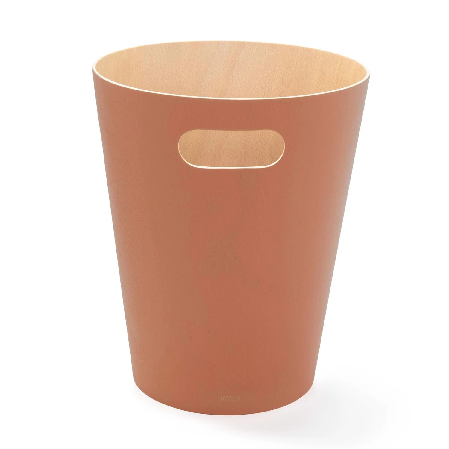 Woodrow is a contemporary waste can that adds a modern touch to any space. The two-tone can combines a natural wood interior with a stained finish on the outer surface, which helps to warm and ground a room. Featuring conveniently integrated handles, Woodrow is freely moveable and disposing of waste and recycling is hassle-free. The beautifully curved wooden can is perfect for any powder room, bathroom, office, or study, and transforms a basic household product into an eye-catching piece of decor. Measuring 9” in diameter and 11” tall with a capacity of 2 gallons (7.5 L), Woodrow trash can is great for small spaces.