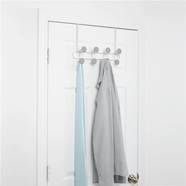 - Over the door metal hook with soft touch rubber caps to prevent snagging on clothing